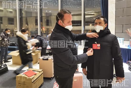 2023年1月13日清晨,参加自治区十四届人大一次会议的和田地区代表团代表在驻地领取代表证。