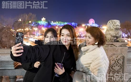 2024年1月1日,市民在乌鲁木齐市西大桥打卡拍照。