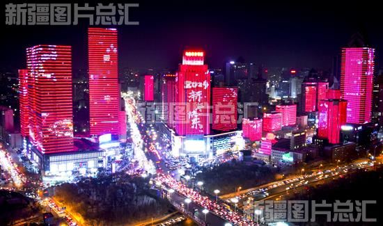 1月1日晚,乌鲁木齐市西大桥附近时代广场、红山新世纪等墙体上灯光、图案不断变换,“您好,乌鲁木齐”“中国结”“全家福”“红灯笼”等图案,将几栋楼体连接起来,形成红色的海洋。人们纷纷拿起手机,拍下这美好时刻,感受这浓浓的节日氛围。