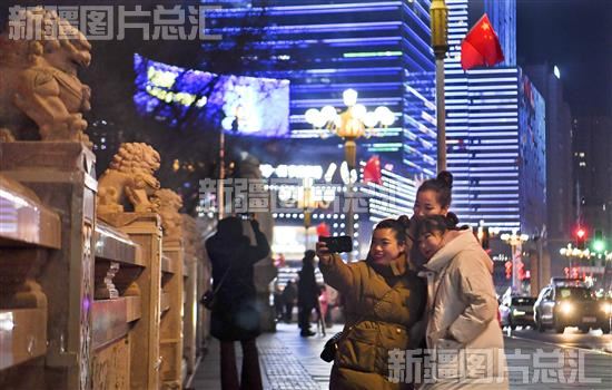 关键字:乌鲁木齐市 西大桥 时代广场 红山新世纪 灯光秀 市民 打卡 拍照 璀璨灯光 新年 节日氛围