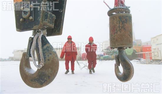 2024年1月1日,中国石油集团西部钻探工程有限公司准东钻井公司70126钻井队石油工人冒着严寒准备给吊车悬挂钢丝绳,为吊装设备做准备。