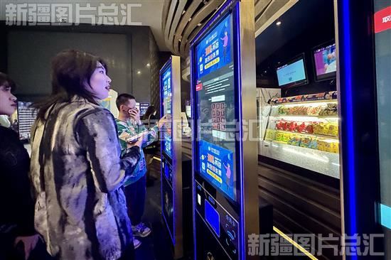 2024年1月1日,顾客正在乌鲁木齐市天山区一家影院里操作自助机取票。