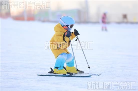 2024年1月1日,小朋友在乌鲁木齐市水磨沟区维斯特滑雪场滑雪。