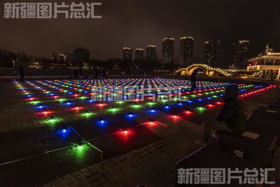 2024年1月1日,克拉玛依河中心景区,闪烁着五颜六色灯光的500架无人机陆续腾空,以天空为幕布,无人机灯光为画笔,舞步夜空,绘制出一幅幅生动图案,为现场观众展现了一场美轮美奂的空中艺术盛宴。