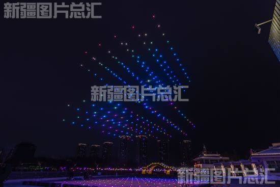 2024年1月1日,克拉玛依河中心景区,闪烁着五颜六色灯光的500架无人机陆续腾空,以天空为幕布,无人机灯光为画笔,舞步夜空,绘制出一幅幅生动图案,为现场观众展现了一场美轮美奂的空中艺术盛宴。