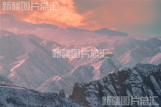 2024年1月1日晨,玛纳斯肯斯瓦特水库上空飘着淡淡的粉红色云雾,在白雪皑皑的映射下,非常壮观,层峦叠嶂的山脉,在暖阳下,显现出北国之冬的绚丽。