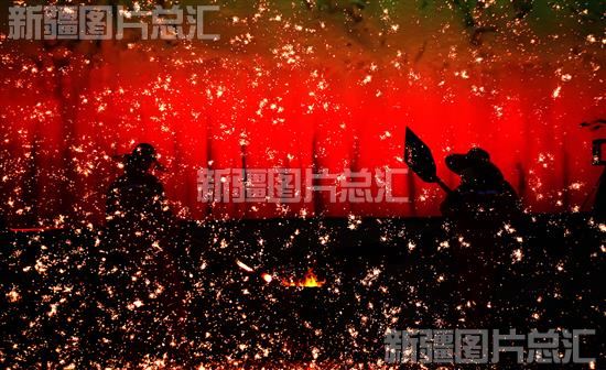 2023年12月31日,市民在乌鲁木齐市水磨沟区天山明月冰雪城观看打铁花表演。