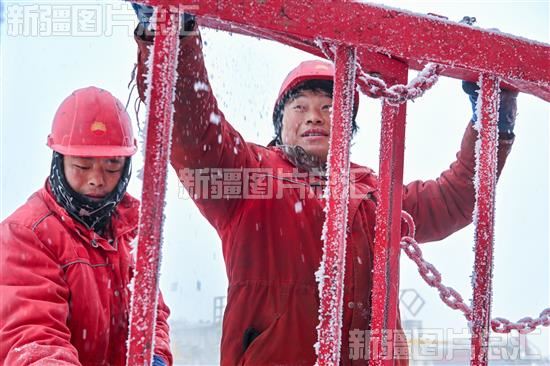 关键字:中国石油 新疆油田公司 小拐油田 西部钻探 准东钻井公司 钻井队 石油工人 队员 红色工装 采油工 坚守 严寒 井架 维护设备 新年第一口钻井 安装设配 战严寒 保生产 大雪纷飞 戈壁 荒漠