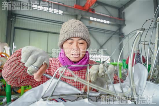 2024年1月4日,在昌吉市城北花灯制作车间,工人正在赶制花灯。