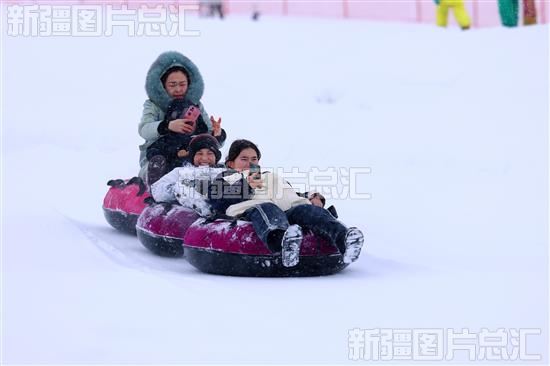 2024年1月7日,游客在阿勒泰市将军山国际滑雪度假区滑雪圈。