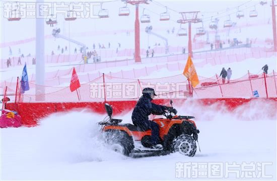 2024年1月7日,游客在阿勒泰市将军山国际滑雪度假区体验雪地车。