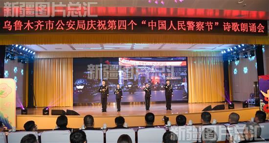 当日,乌鲁木齐市公安局举办以“诗润警心展风采 情满天山写忠诚”为主题的诗歌朗诵会,庆祝第四个中国人民警察节。民辅警代表、退休民警、英烈亲属和民警亲属代表400余人参加了活动。