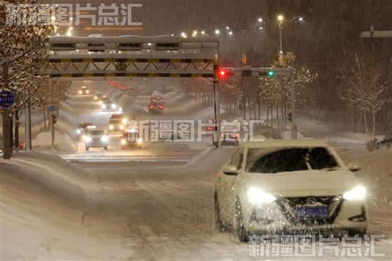 2024年1月9日晚,车辆行驶在阿勒泰市市区。
