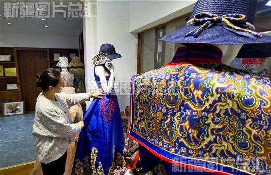 2024年1月11日,工作人员在“丝路霓裳”服饰文化馆整理蚕丝服饰。