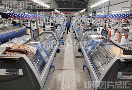 2024年1月11日,操作员在新疆天山毛纺织股份有限公司电脑横机车间查看设备运行情况。