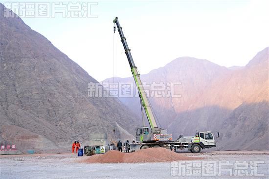 关键字:国家节水供水重大水利工程 阿克苏地区 库玛拉克河 温宿县 乌什县 水利工程 水利枢纽 大石峡 峡谷 建设 现场 工人 施工 大坝 填筑