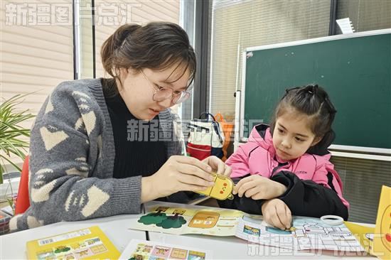 2024年1月13日,社区干部和孩子们一起做手工。