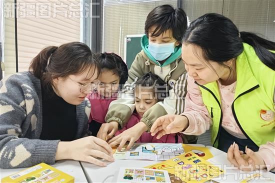 2024年1月13日,社区干部和孩子们一起做手工。