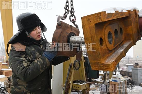 2024年1月11日,克拉玛依市圣起钻采设备有限责任公司技术人员在安装抽油机设备及部件。