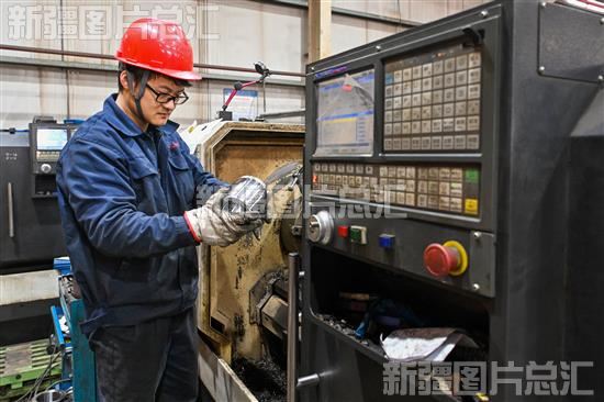 2024年1月11日,工人在位于克拉玛依高新技术产业开发区装备制造基地的克拉玛依市圣起钻采设备有限责任公司生产车间生产抽油机设备。