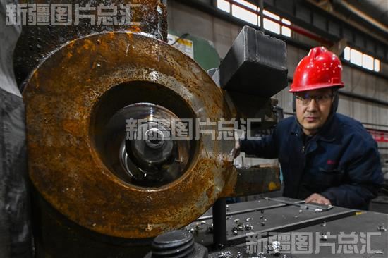 2024年1月11日,工人在位于克拉玛依高新技术产业开发区装备制造基地的克拉玛依市圣起钻采设备有限责任公司生产车间生产抽油机设备。