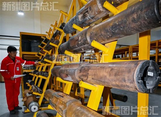 2024年1月15日,技术人员在位于克拉玛依市的新疆帝陛艾斯钻头工具有限公司生产车间检查扩孔工具。