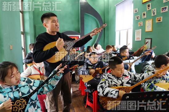 2024年1月12日,老师给学生传授冬不拉弹奏技巧。