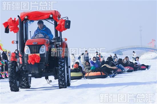 2024年1月13日,游客体验拖拉机拉雪圈。