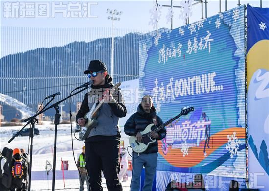 2023年12月23日,歌手在丝绸之路山地度假区举行的雪地音乐节上演唱。
