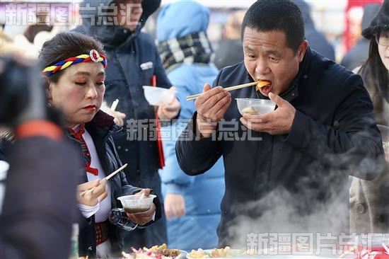 当日,木垒哈萨克自治县英格堡乡月亮地村举办“品百家饭 忆童年趣”文化活动,吸引众多游客和当地群众前来品尝百家饭,体验打雪仗、打陀螺、滚铁环、踢毽子等童年游戏。