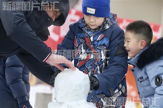 2024年1月18日,小朋友一起堆雪人。