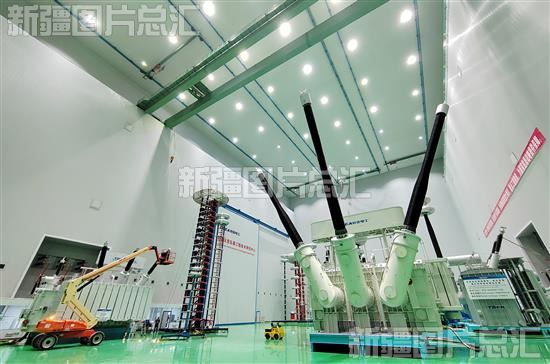 2023年12月19日,工作人员在特变电工新疆输变电科技产业园内的特高压变压器工程技术研究中心测试变压器。
