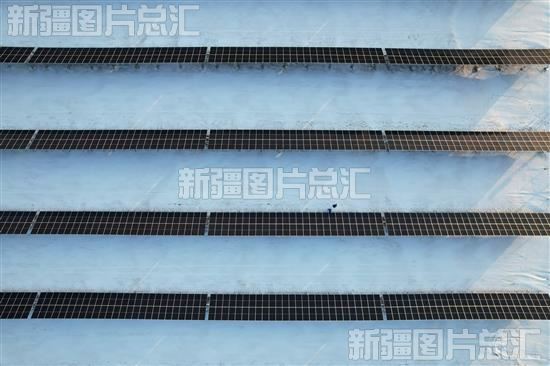 2023年12月20日,华电新疆发电有限公司新能源分公司工作人员在木垒哈萨克自治县光伏产业园区巡检。