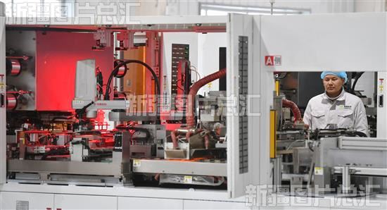 2023年12月12日,工作人员在木垒县海泰新能科技股份有限公司查看设备运行情况。