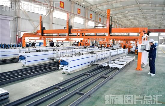 2023年12月19日,工作人员在新疆中瀚顶达环保科技有限公司生产光伏支架。