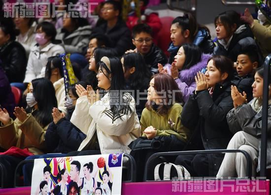 2023年12月17日,观众为新疆女篮队员的精彩表现鼓掌欢呼。