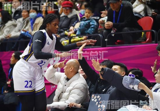 2023年12月17日,新疆女篮队员卡拉尼·布朗下场后与队员击掌。