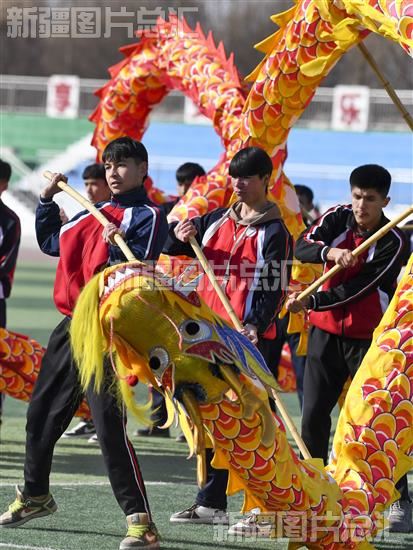 2024年1月19日,疏附县一中学生正在进行舞龙表演。