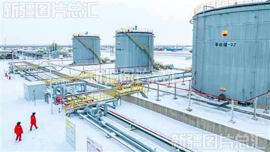 2023年?12月13日,中国石油新疆油田吉庆油田作业区页岩油联合站员工冒雪巡检,确保安全生产,冲刺全年各项生产任务目标。