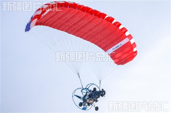 2024年1月20日,游客在博斯腾湖大河口景区体验低空动力伞。