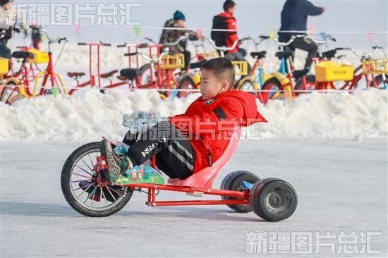 2024年1月20日,游客在博斯腾湖大河口景区体验冰上娱乐项目。