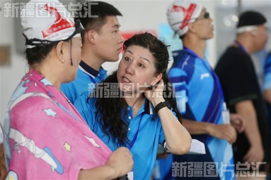 2023年9月10日,在参加自治区第七届残疾人运动会暨第四届特殊奥林匹克运动会游泳比赛前裁判员正在与运动员进行交流。