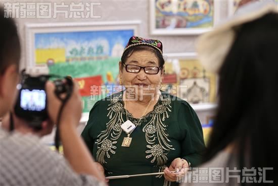 2023年9月1日,全媒体报道团队记者采访农民画家茹则瓦妮罕·库尔班。