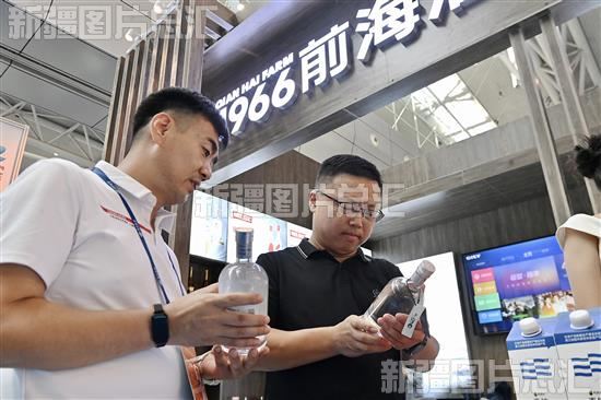 2023年8月21日,农产品食品展区,客商正在了解酒品。