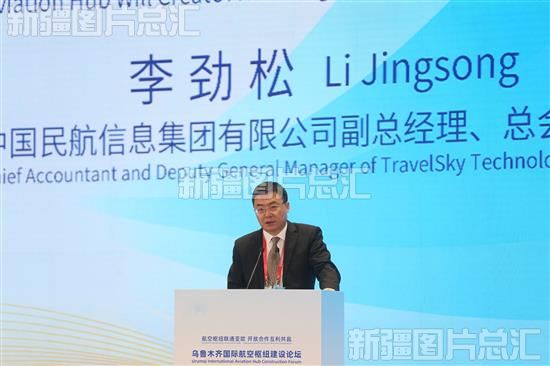 中国民航信息网络股份有限公司副总经理、总会计师李劲松做《以航空枢纽数字化转型开拓乌鲁木齐区域数字经济发展新格局 》主题演讲。