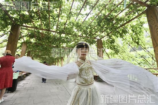 关键字:吐鲁番市葡萄沟景区 旅游 游客 经济 跳舞 葡萄长廊 葡萄藤 旅游旺季