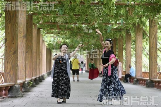 关键字:吐鲁番市葡萄沟景区 旅游 游客 经济 跳舞 葡萄长廊 葡萄藤 旅游旺季
