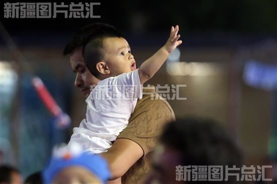 2023年6月7日,家长带着孩子在夜市玩耍。