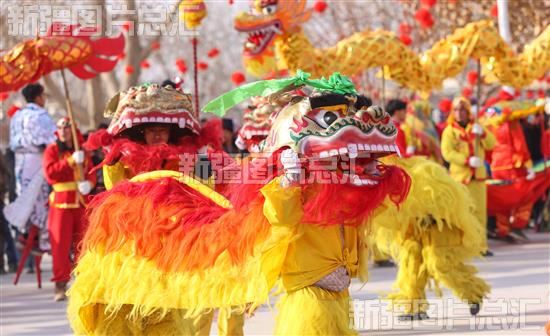 2024年1月19日,群众演员进行舞狮舞龙表演。