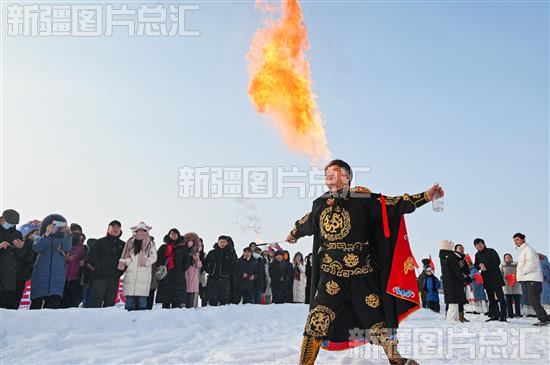 当日,呼图壁县第四届百泉湖冰雪风情节系列活动开幕,游客在活动现场观看民俗表演,体验冰上旅游项目,乐享“冰雪+”乐趣。